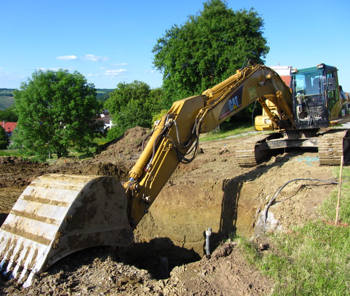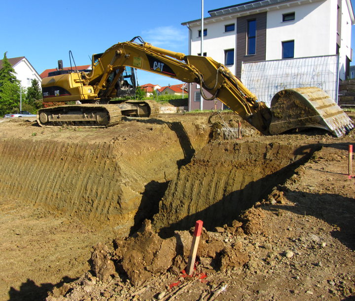 Hier die Bilder vom ersten Tag des Aushubs der Baugrube: