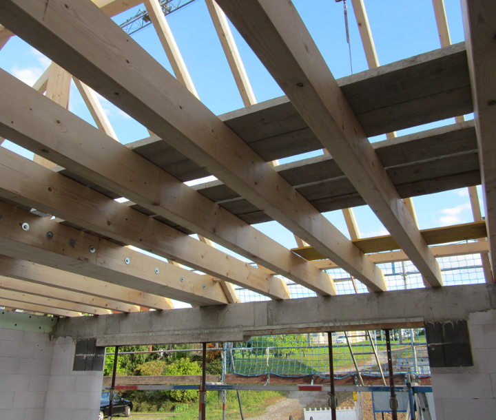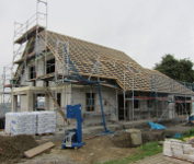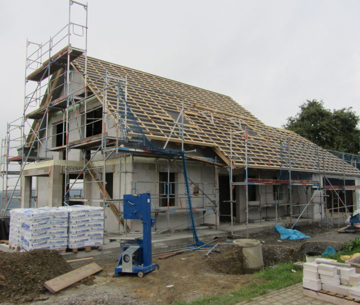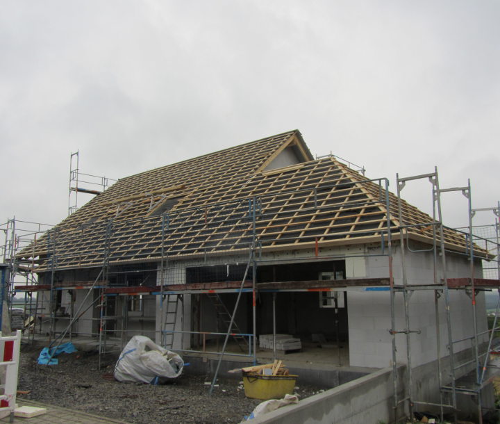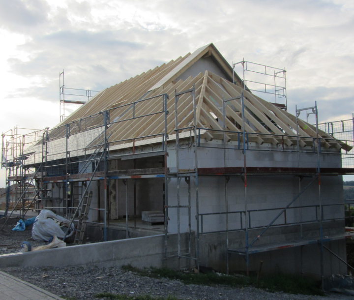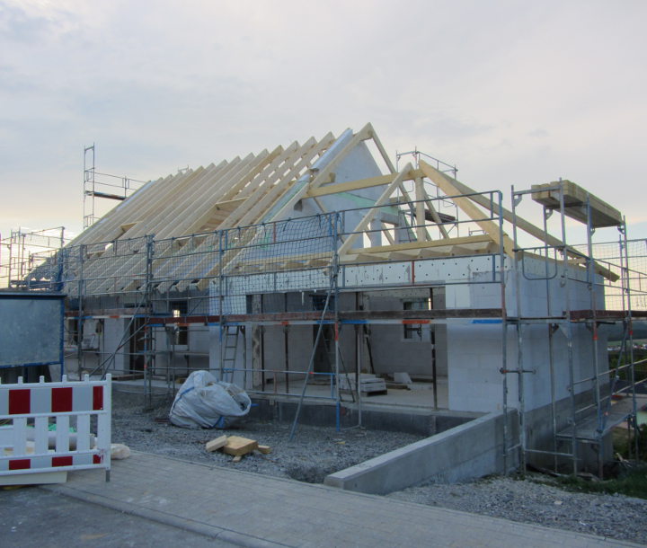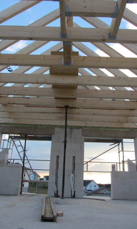 Im EG und im UG wurden die restlichen Gips-Wandbauplatten angebracht und die Zimmerer haben heute mit den Dachdeckarbeiten begonnen: