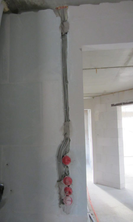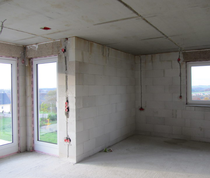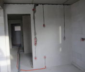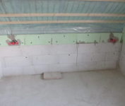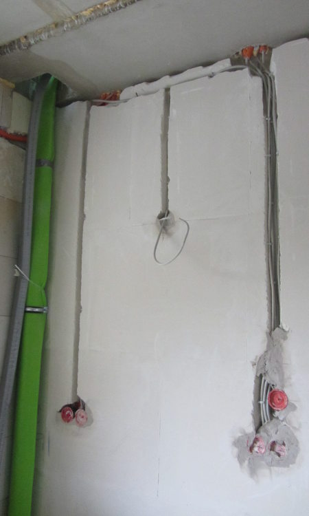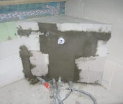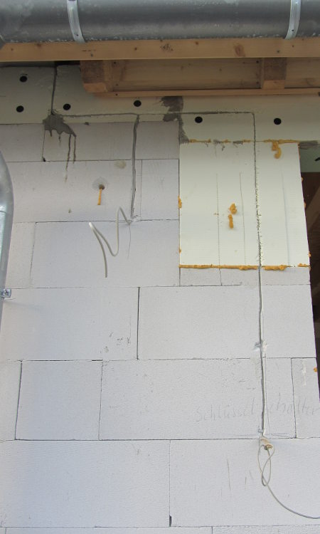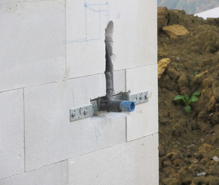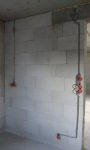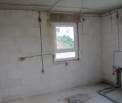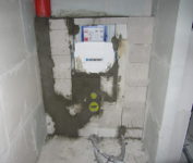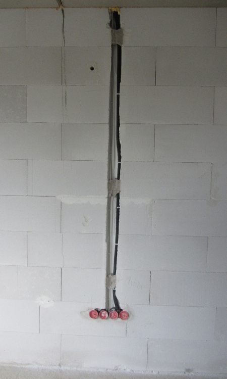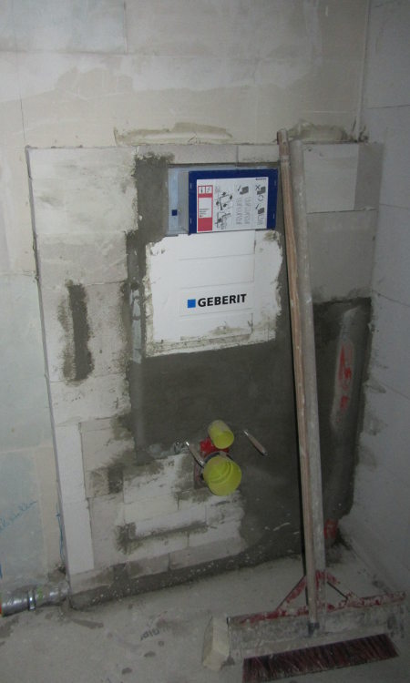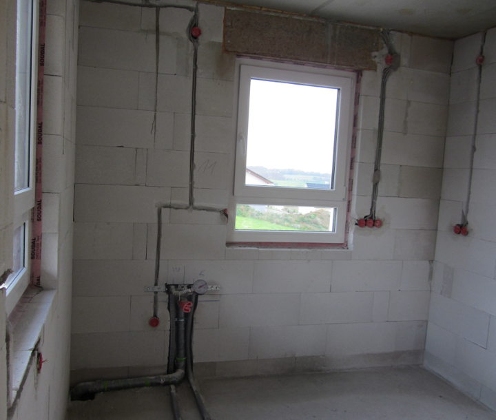 Der Außenwasserhahn wurde angebracht und die Vormauerungen in Bad und WC wurden fertiggestellt: