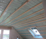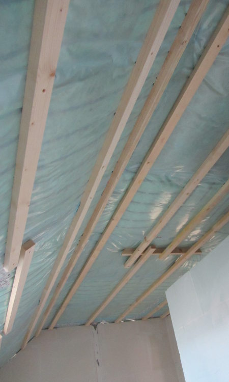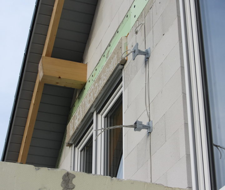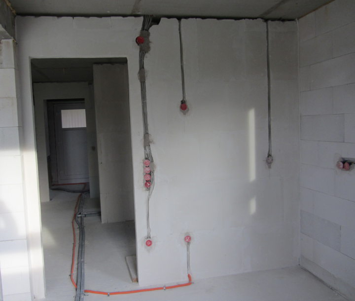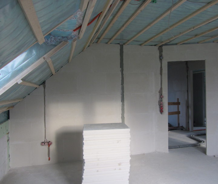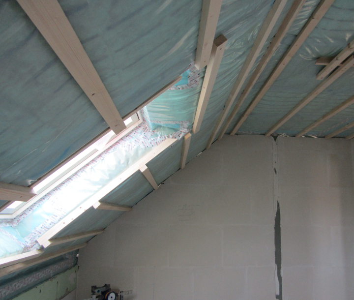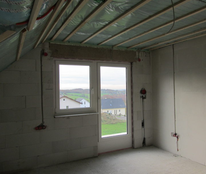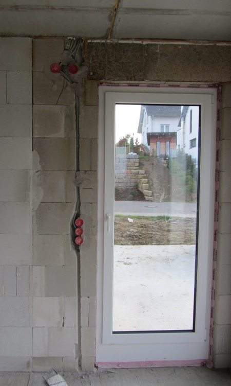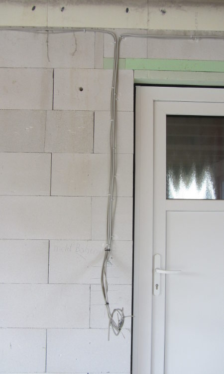 Diese Woche wurde die Bautüre eingebaut und die Isolierung unter dem Dach angebracht. Ebenso wurde mit der Elektroinstallation begonnen: