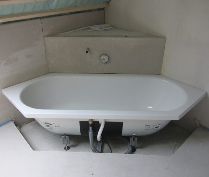 Diese Woche wurde die Duschwanne und die Badewanne installiert: