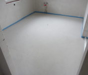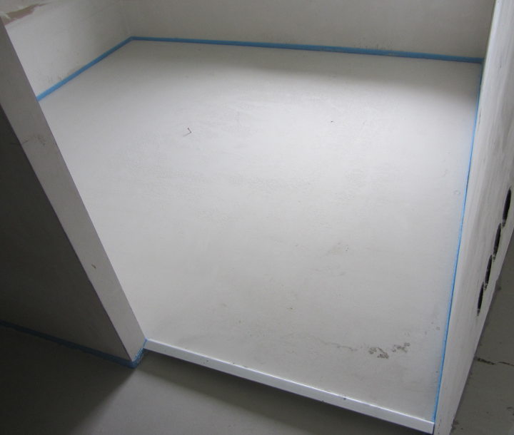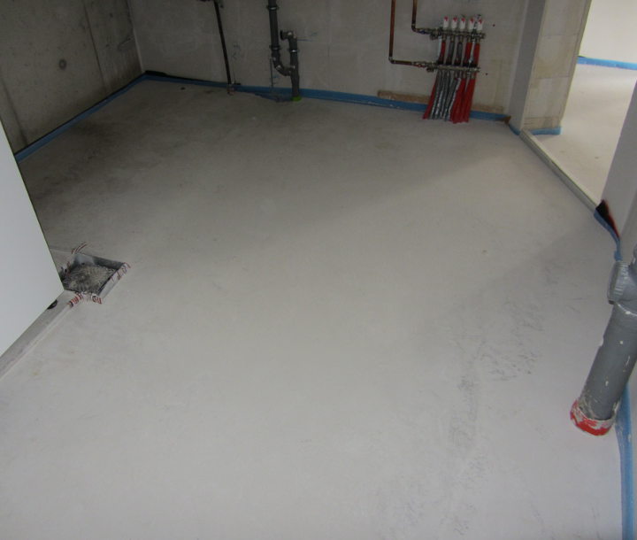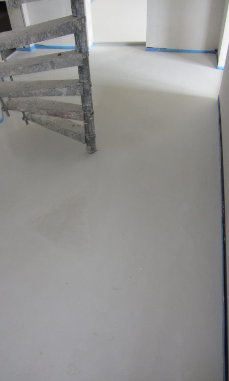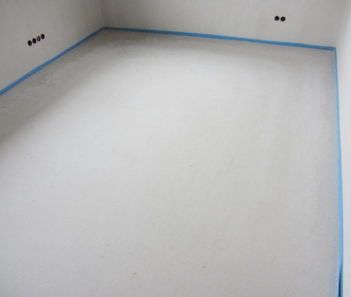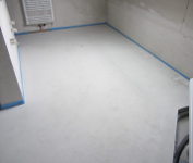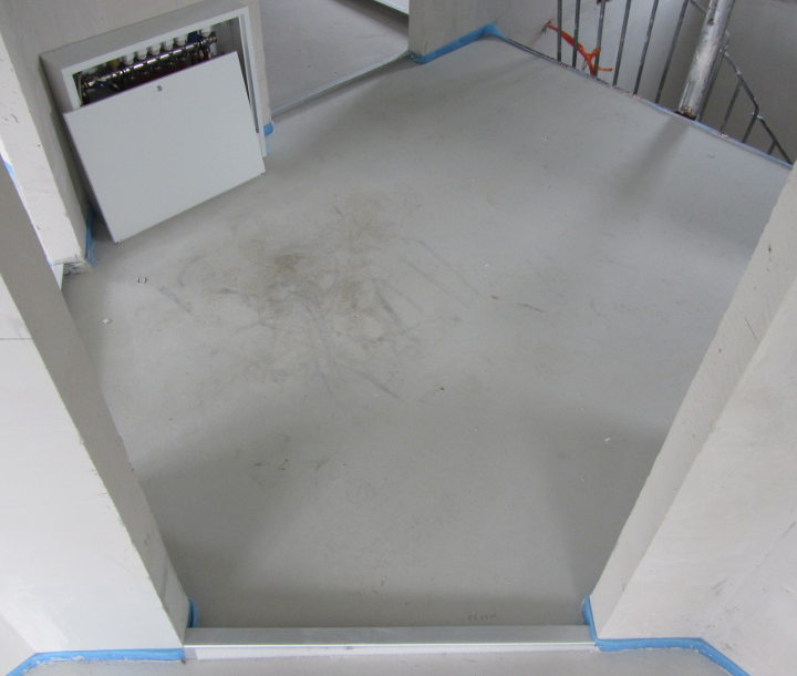 Der Estrich sieht mittlerweile dank Heizprogramm (bis 50 °C) trocken aus: