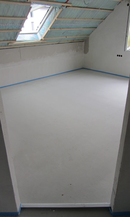 ...und der Estrich verlegt. Bis Weihnachten passiert somit erst einmal nichts mehr! Jetzt heißt es lüften, lüften, lüften.