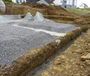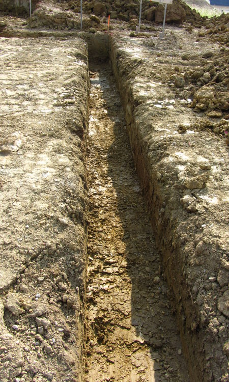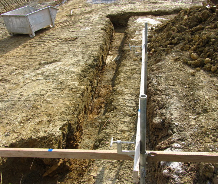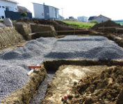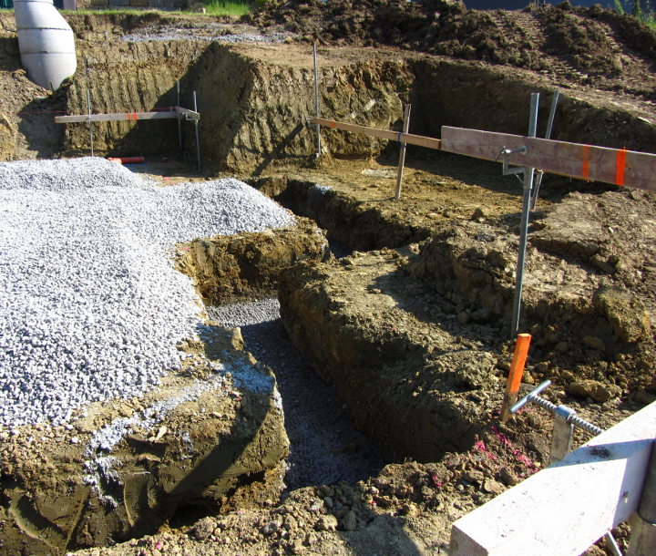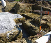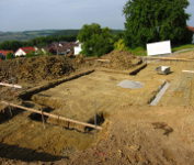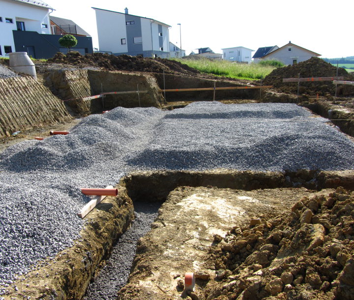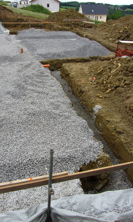 ...für die Fundamente und Kanäle für die Abflußrohre wurden Gräben gezogen.