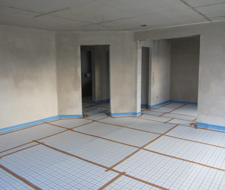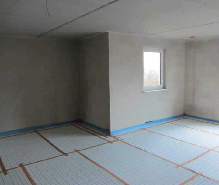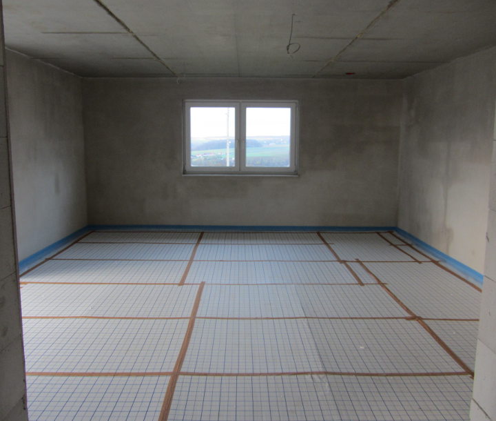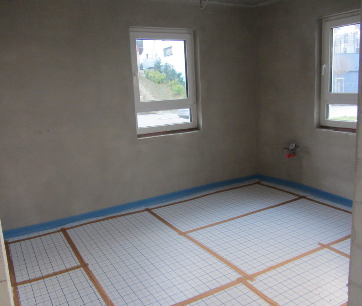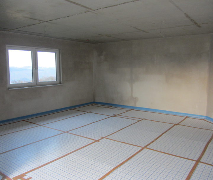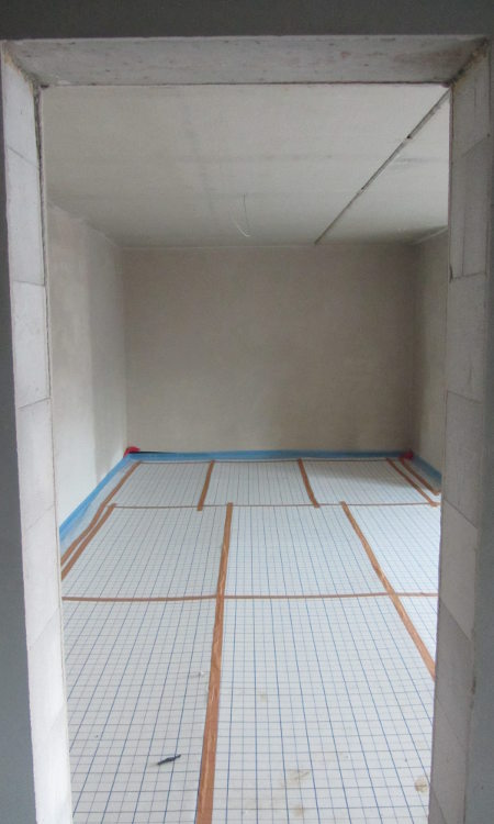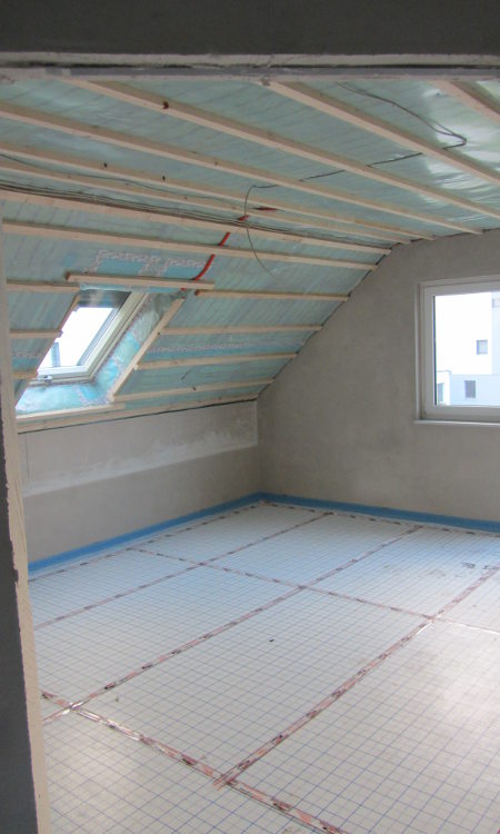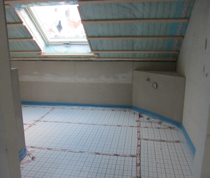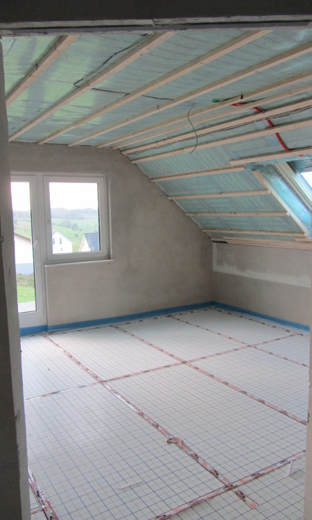 Leider haben wir keine Bilder von den gelegten Heizschleifen sondern nur vom Bodenaufbau mit Isolierung.