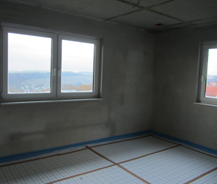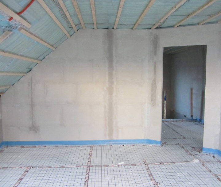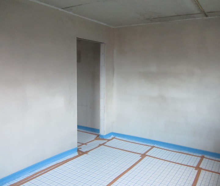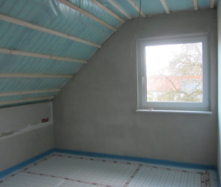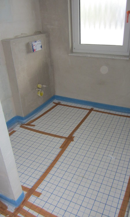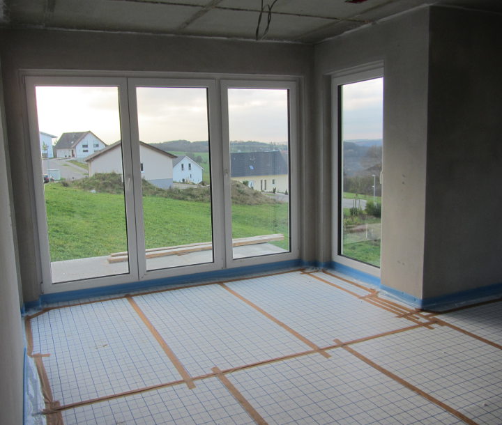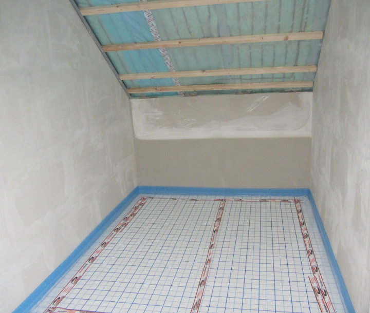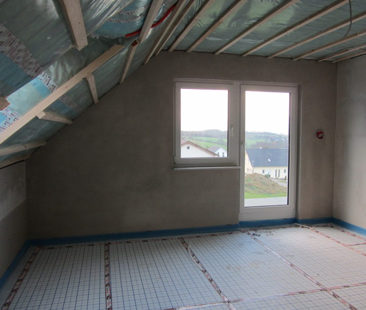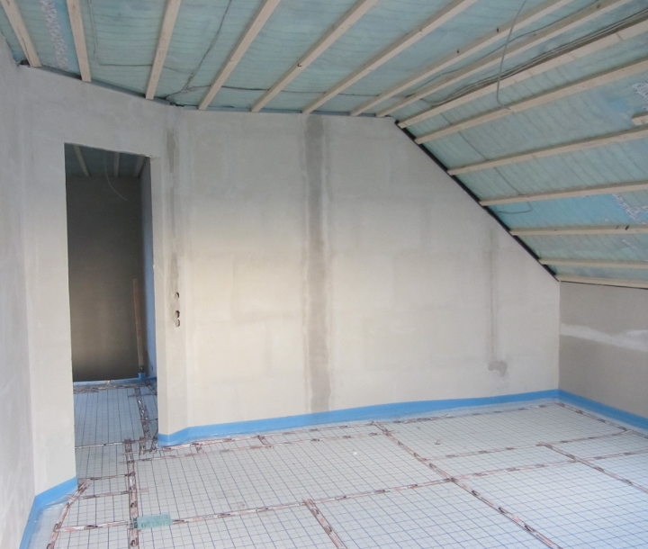 Leider haben wir keine Bilder von den gelegten Heizschleifen sondern nur vom Bodenaufbau mit Isolierung.