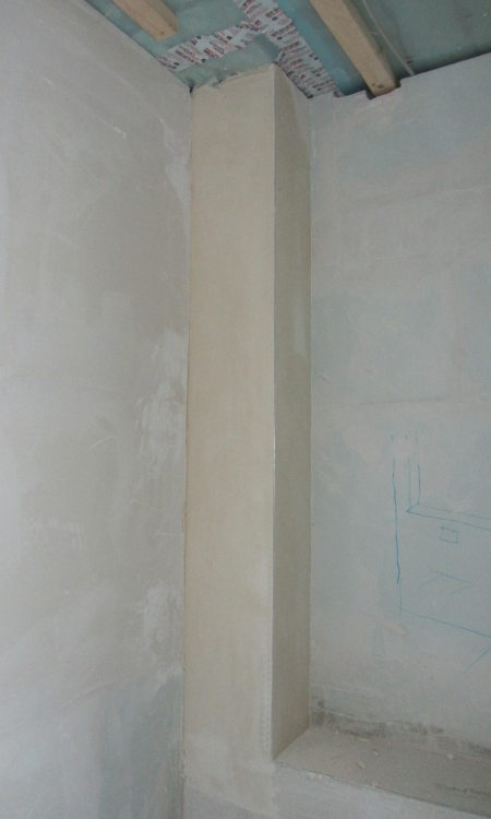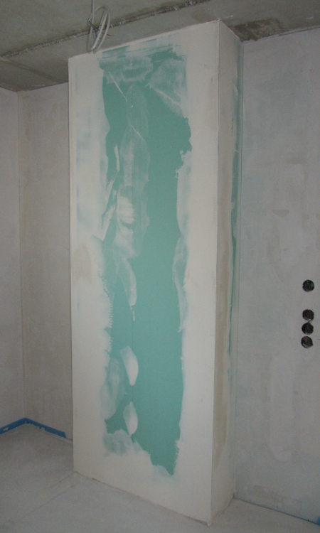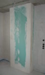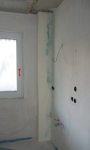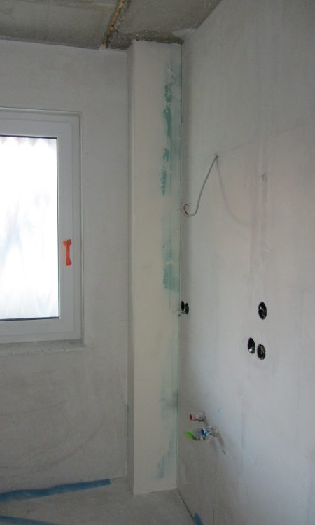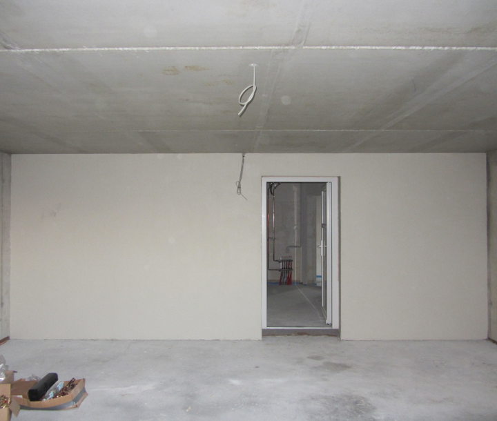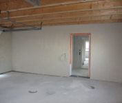 In der Garage und im Garagenkeller wurde der noch fehlende Innenputz angebracht. Desweiteren wurden die Rohrverkleidungen angebracht sowie die Fenster und Türen im Keller verputzt.