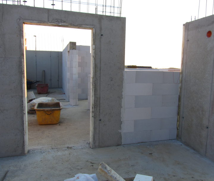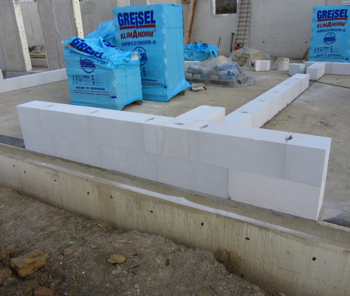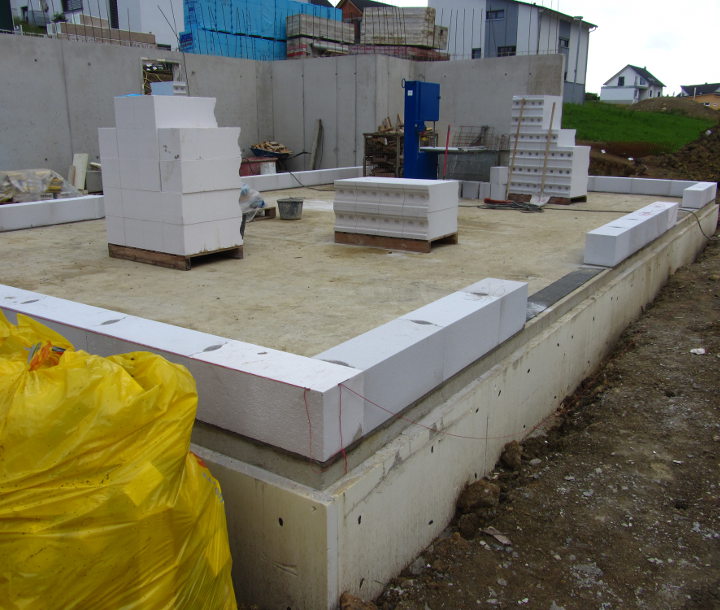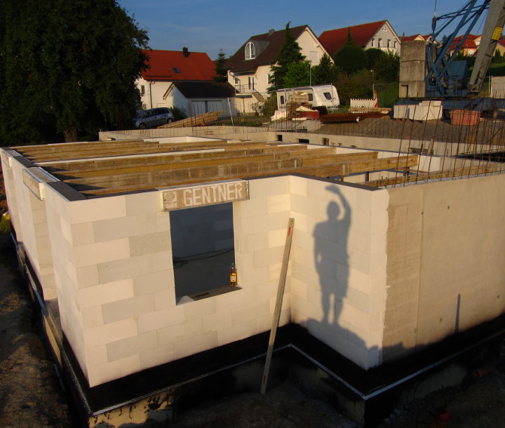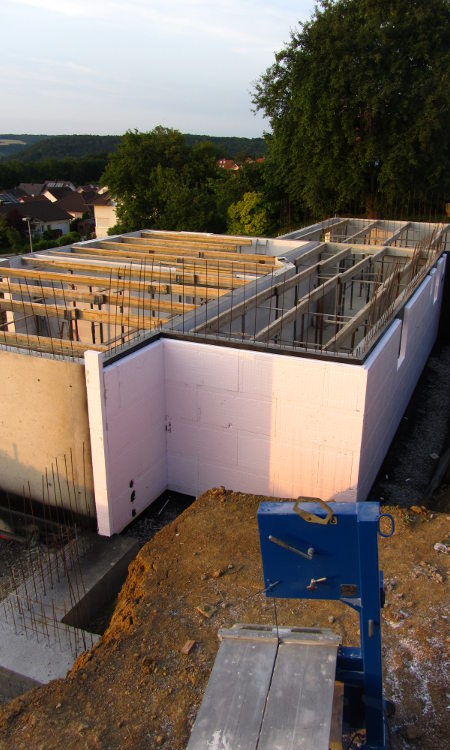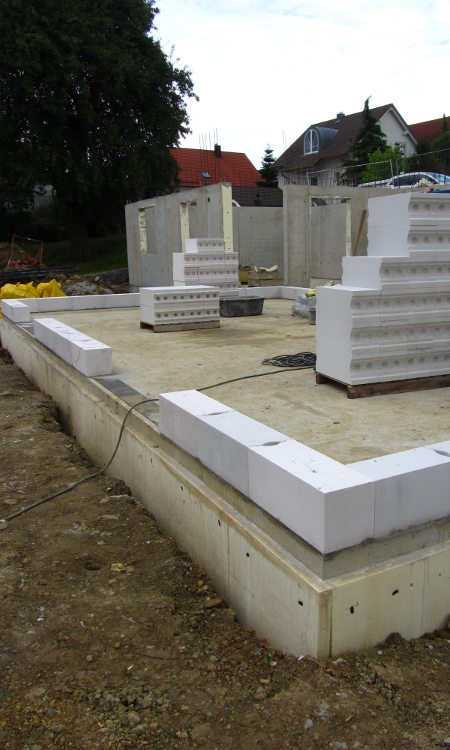 Wie bereits gestern wurden die Kellerwände gemauert: