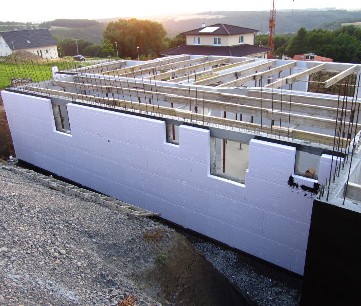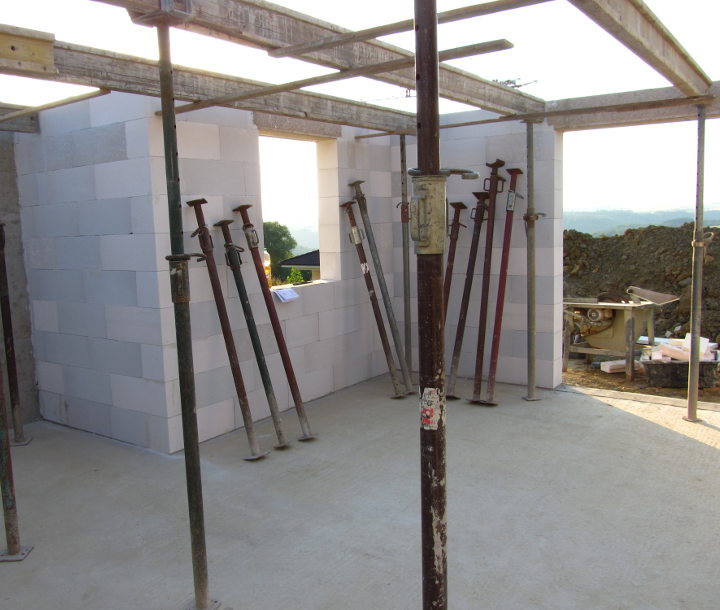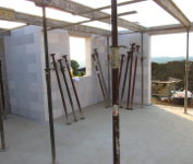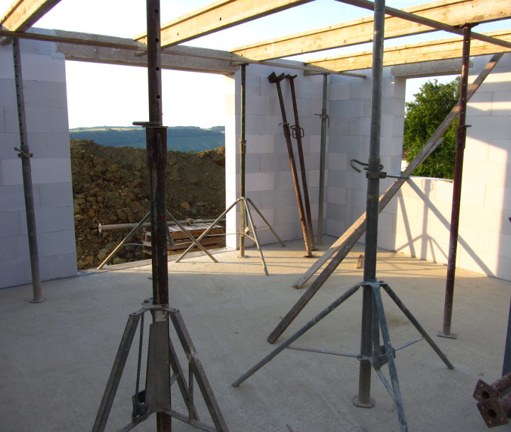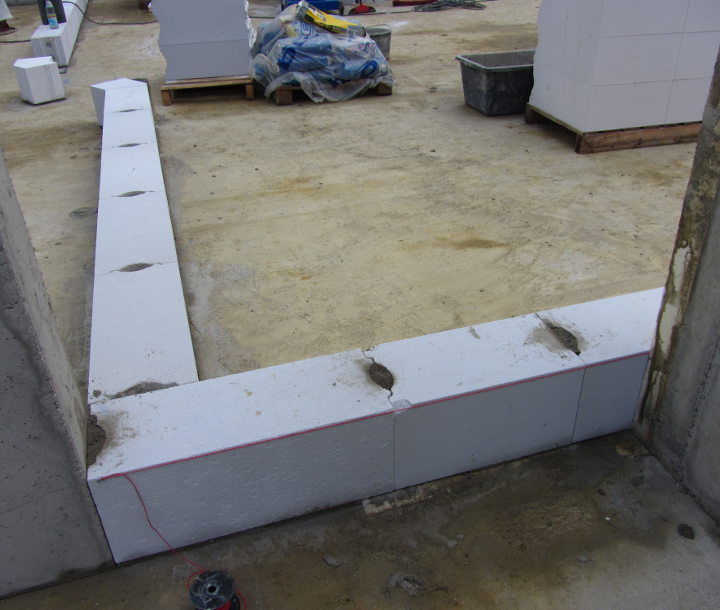 Die Maurerarbeiten im Kellergeschoß sind heute fertig geworden und die ersten Vorbereitungen für die Kellerdecke sind auch schon getroffen: