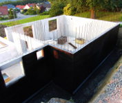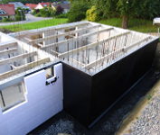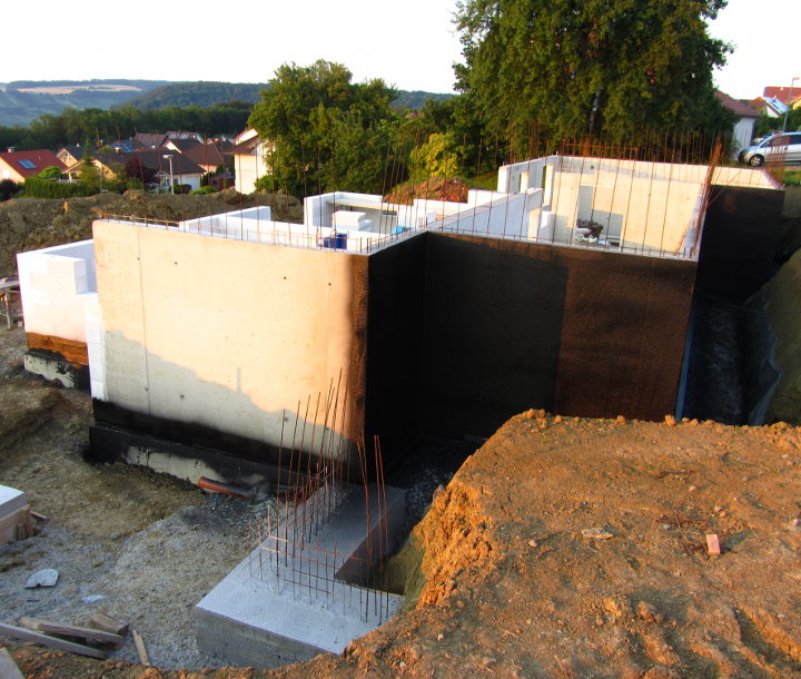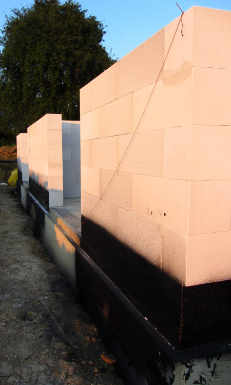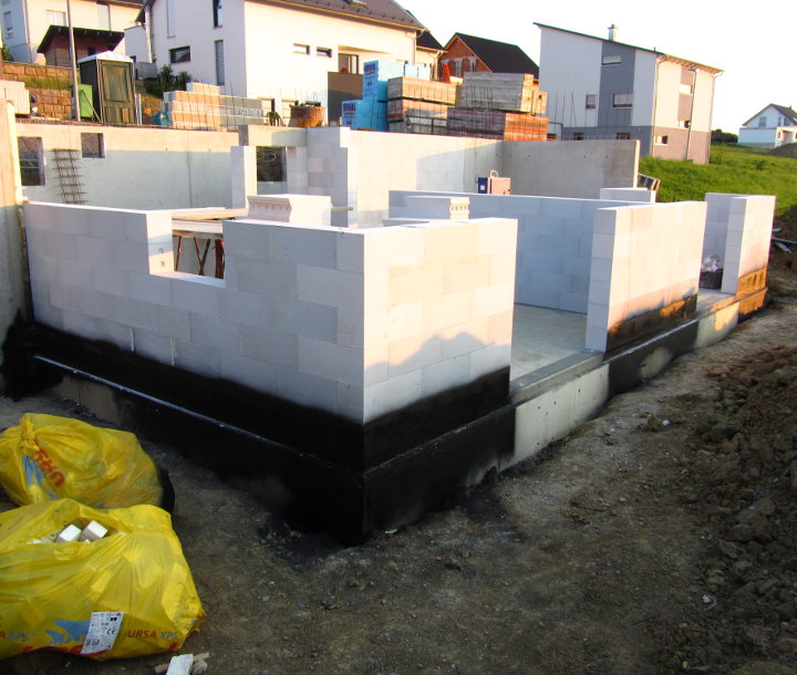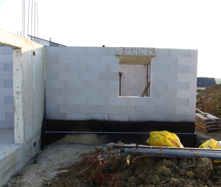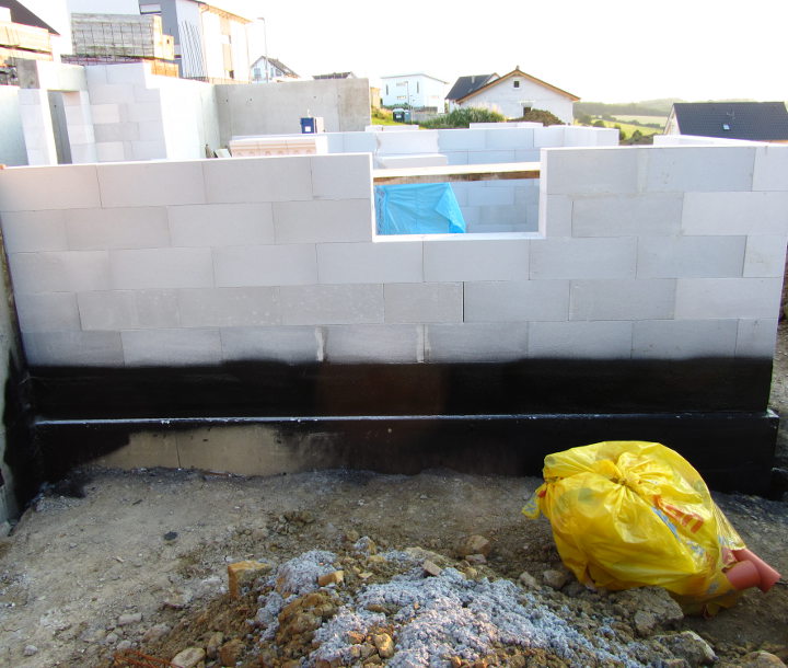 Der Keller wurde heute mit einem schwarzen Schutzanstrich versehen - und auch die Maurerarbeiten gehen richtig voran: