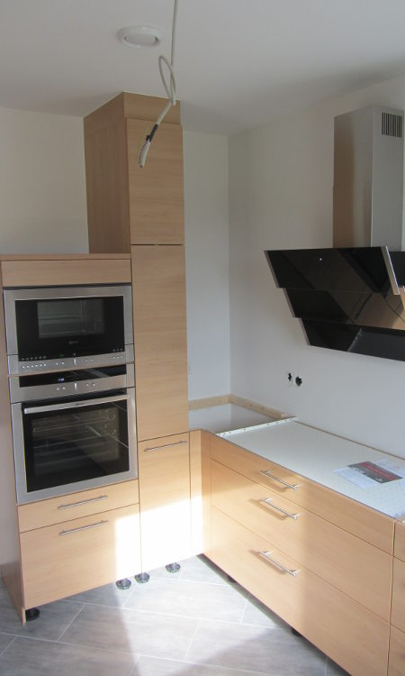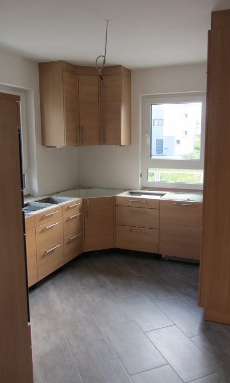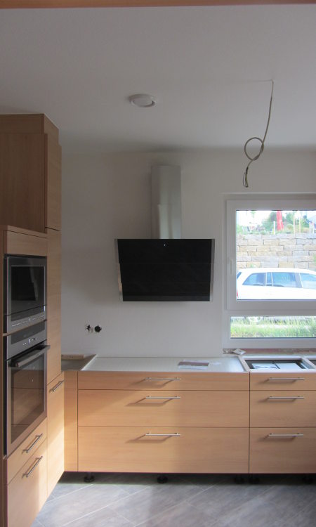 Unser Ferrari ist da - am Montag und Dienstag wurde mit dem Einbau der Küche begonnen. Die Granitplatte kommt voraussichtlich nächste Woche: