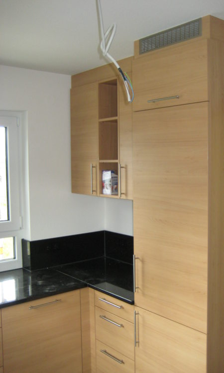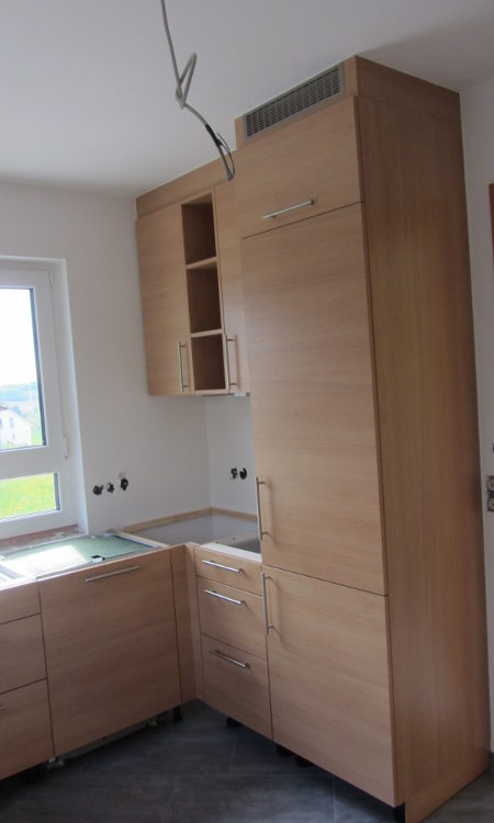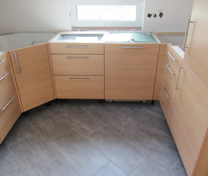 In der Küche wurde der noch fehlende Rollladenschrank und der Wasserhahn angebracht: