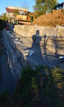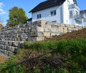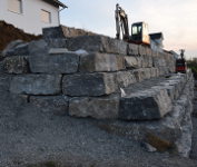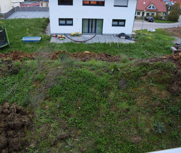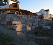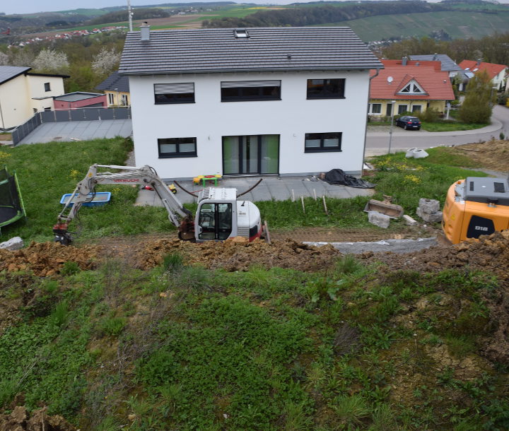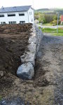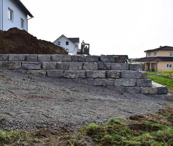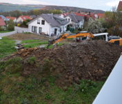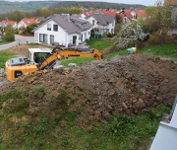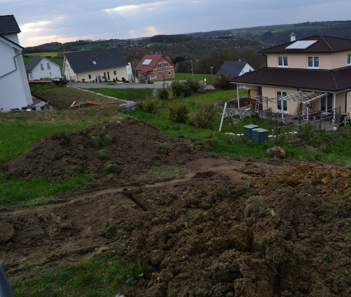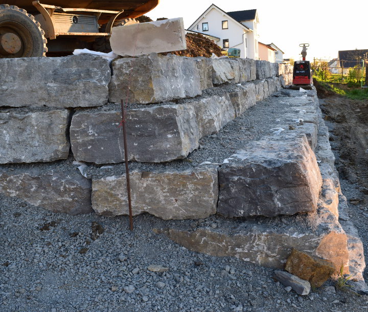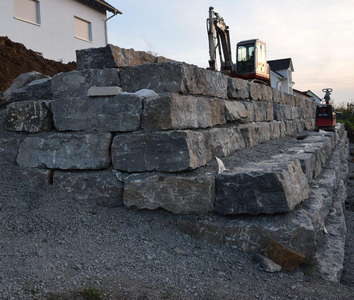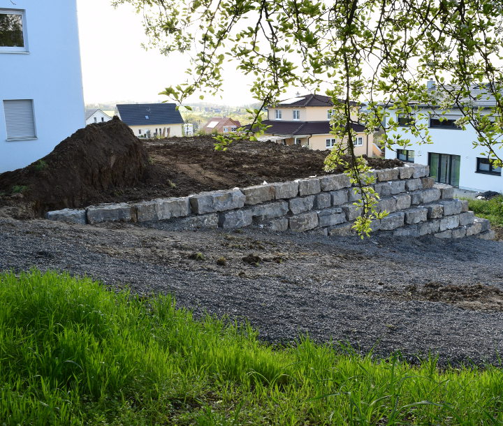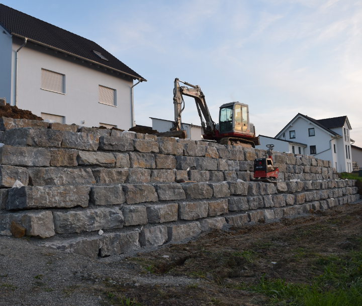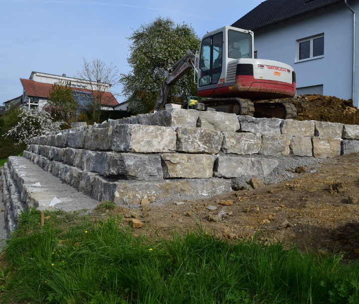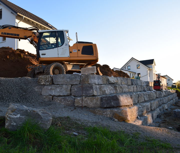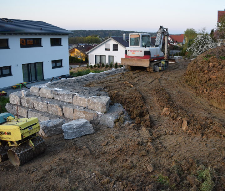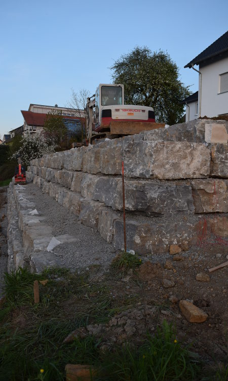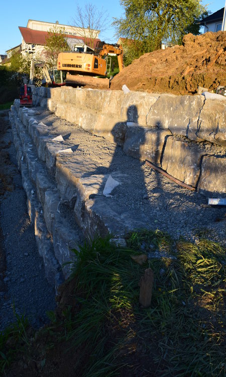 Heute wurde mit den ersten Baggerarbeiten für unsere Natursteinmauer begonnen: