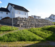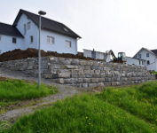 Trotz schlechtem Wetter wurde heute die letzte Steinreihe gesetzt: