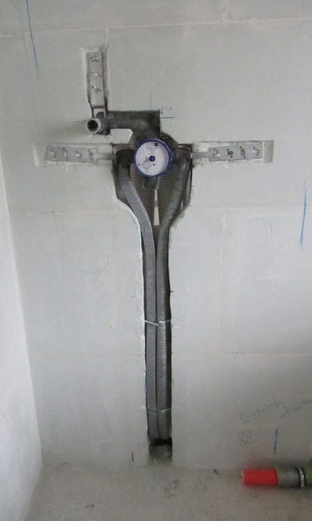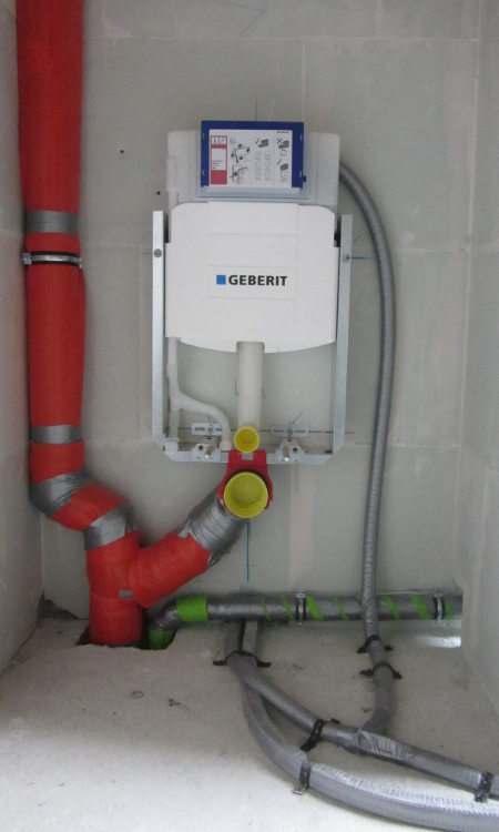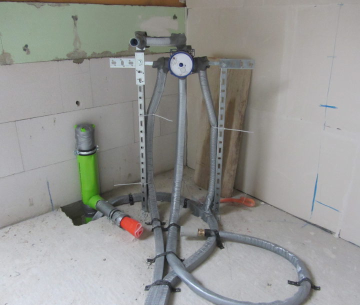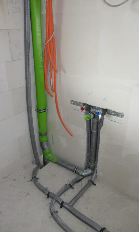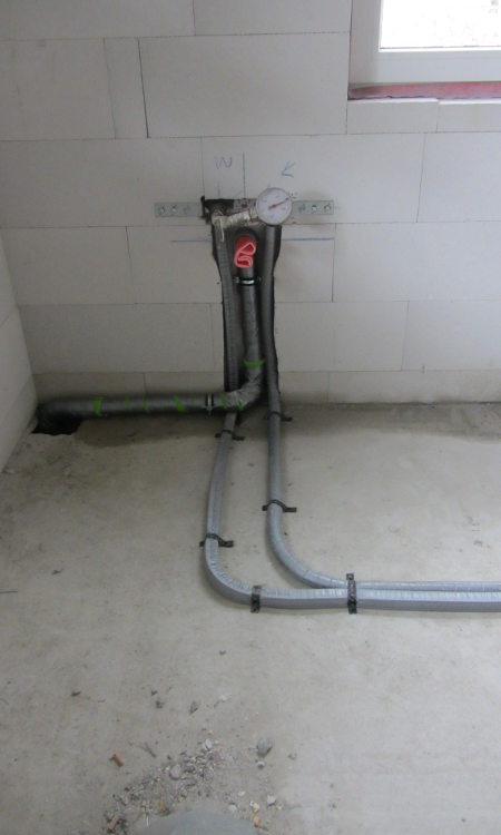 Diese Woche wurde mit der Sanitärinstallation begonnen und die Wasserleitungen gelegt: