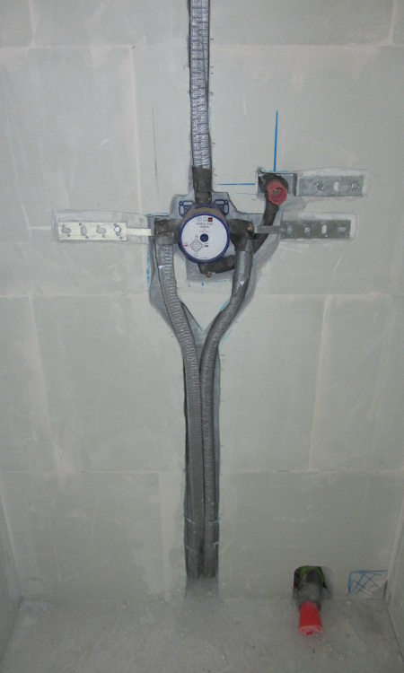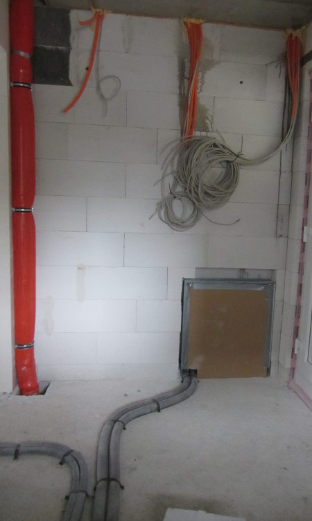 Kater JohnnyDiese Woche wurde mit der Sanitärinstallation begonnen und die Wasserleitungen gelegt: