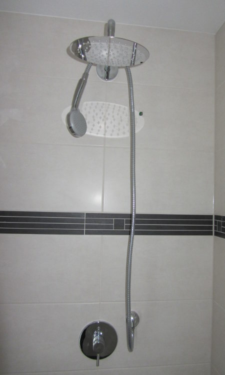 Am Montag wurden die Solarkollektoren auf dem Garagendach angebracht und die restlichen Sanitärgegenstände montiert: