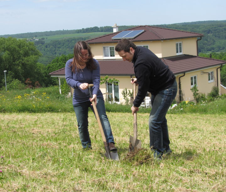 Heute haben wir mit dem ersten Spatenstich den Grundstein für unseren Traum von den eigenen 4 Wänden gelegt.
