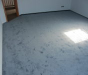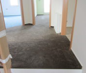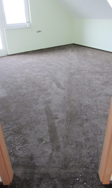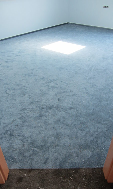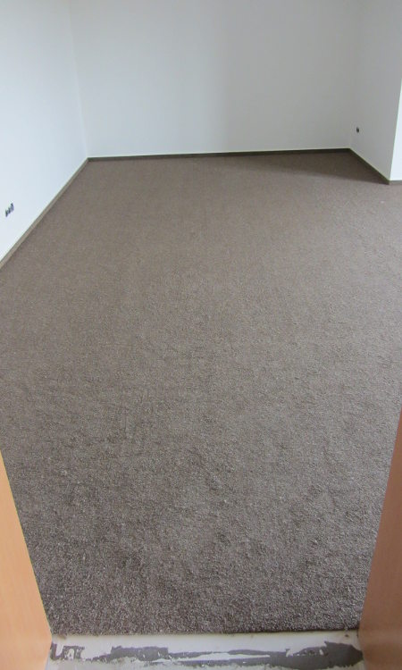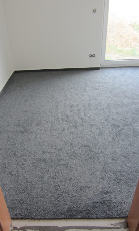 Diese Woche wurden die Teppiche verlegt und die Bodenbelagsarbeiten im Keller, Technikraum, Garagenkeller und in der Garage gemacht: