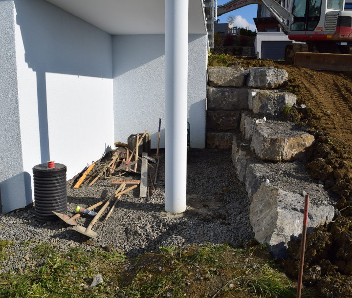 Nachdem am Di. eine Zwangspause eingelegt werden musste, wurde die letzten beiden Tage an der Terrassenmauer gearbeitet: